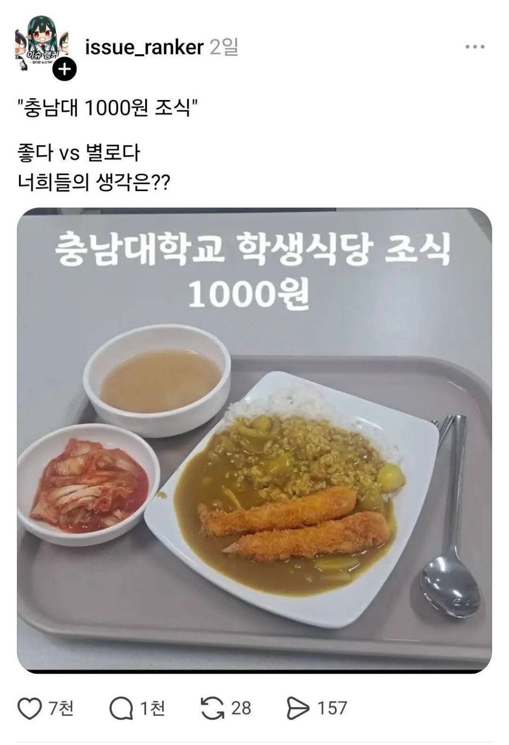 맨 위에 3분 카레에 새우튀김 2개도 혜자인데